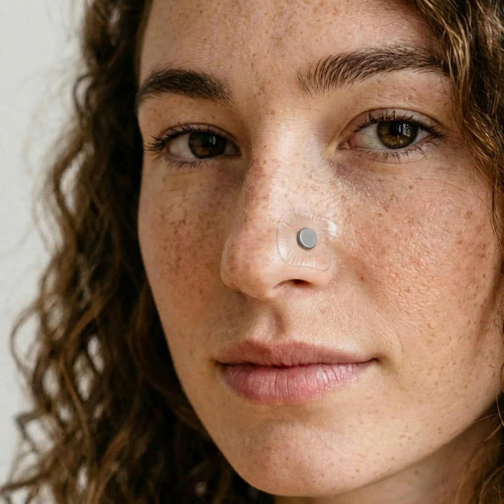 La struttura apre le narici lateralmente, senza comprimere il ponte del naso, e il sistema magnetico mantiene una tenuta stabile senza adesivi aggressivi.